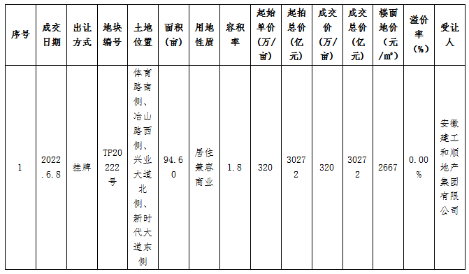 中标信息:公司取得天长城南新区一宗商住用地