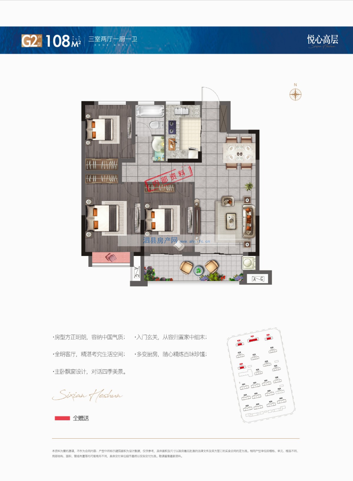 内部配套:小区内设有老人活动区、户外会客区、运动健身区、儿童活动场地、植物空间和邻里广场,满足全龄化亲子娱乐需求,同时小区内部分首层架空,较大化的将景观空间延伸,满足对高品质生活的要求。