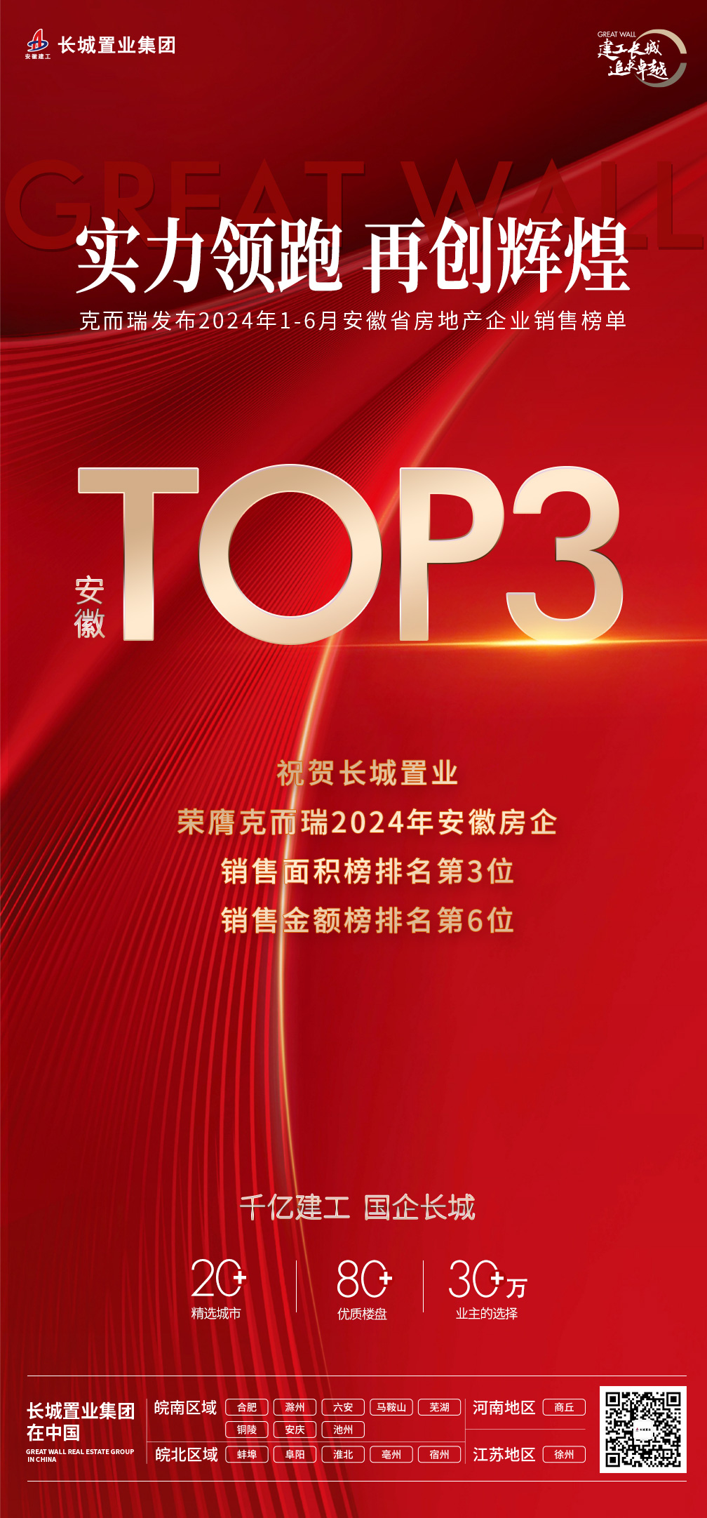 实力领跑 再创辉煌 | 长城置业2024年销售面积蝉联安徽TOP3