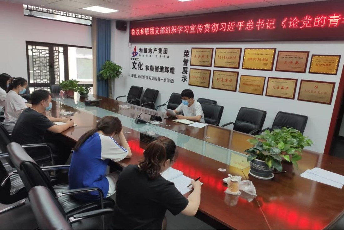 近日,和顺地产团委组织开展习近平总书记《论党的青年工作》专题学习会,要求所属各支部结合建团百年系列活动认真组织学习实践活动。各团支部积极落实,结合属地疫情要求,采用现场、视频相结合的方式组织学习,认真领会著作重大意义、理论脉络、实践要求,切实把其中精髓要义运用到工作实践中。