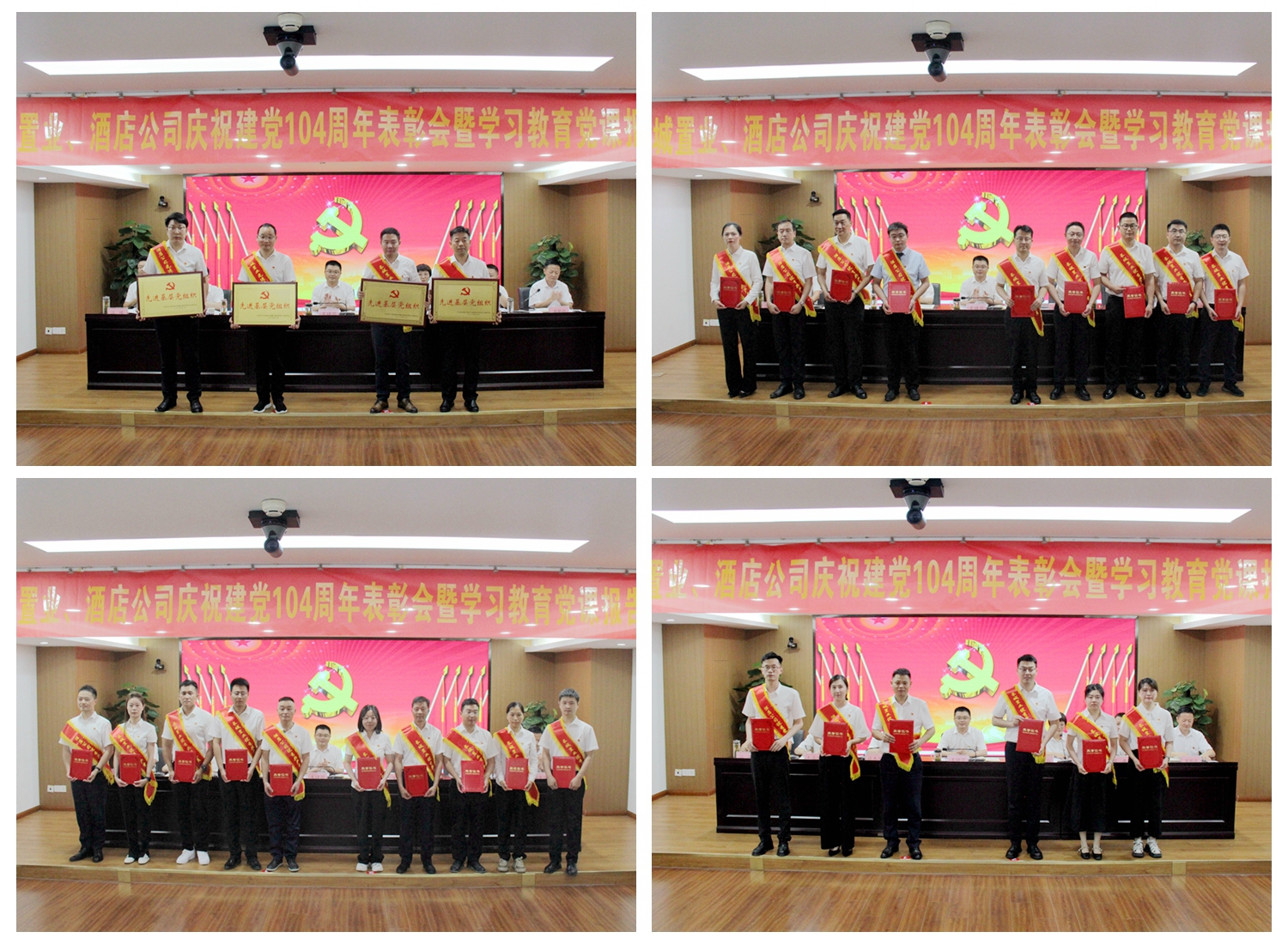 会议传达学习了集团党委庆祝建党104周年表彰会暨学习教育党课报告会精神,宣读了长城置业、酒店公司获得上级党委表彰的先进集体和优秀个人名单。