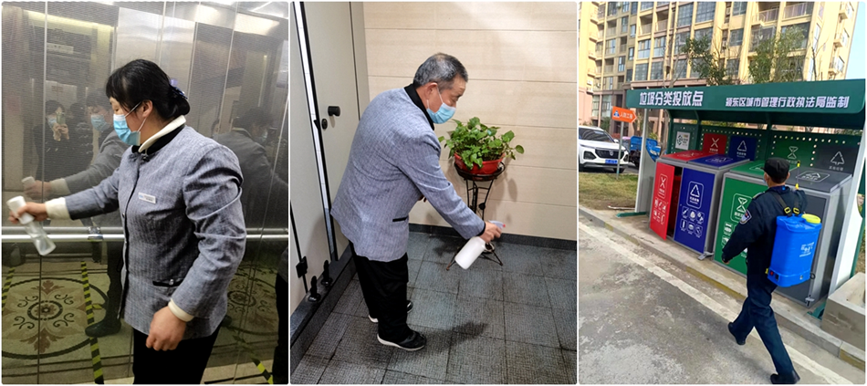 蚌埠沁园春、马鞍山荷塘月色等各地项目积极开展消毒消杀工作,对物业服务中心、地下车库、入户门厅等公共区域、关键场景坚决做到多频次、全覆盖、无死角,以实际行动全力保障小区业主的生命安全和身体健康。