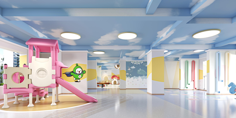 其内部在设计上,童乐区域突出童话色彩,营造梦幻空间,配置丰富玩乐器材,汇集互动、体验、娱乐于一体,让孩子们在自由的奔跑与嬉闹中激发想象,释放天性。