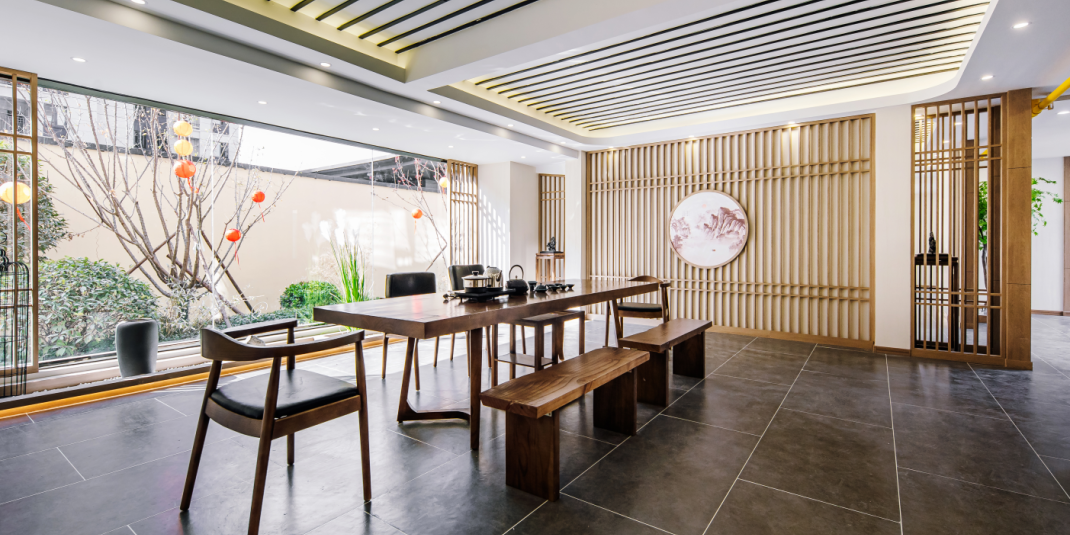 亲邻相聚聊天,短短的交谈中,亦能结交知心的朋友。一个舒适的会客空间,是打破现代都市的冷漠和生活单调的答案,亦是和顺式美好生活的展现。