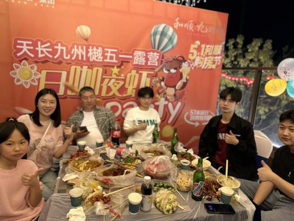 九州樾项目紧扣“去啥淄博?来天长九州樾露营”主题,将售楼部打造成网红打卡露营地,邀请老业主和意向客户来售楼部观景台吃龙虾、吃烧烤、喝啤酒。通过抖音、视频号线上和线下联动发声,制造“售楼部龙虾节”“网红露营”“吃货福利”等网红话题,吸引目标客群集中持续关注,不断增加案场客户来访量。五一期间共认购14套,认购金额1701万,实现五月开门红,为完成全年销售指标打下坚实基础。