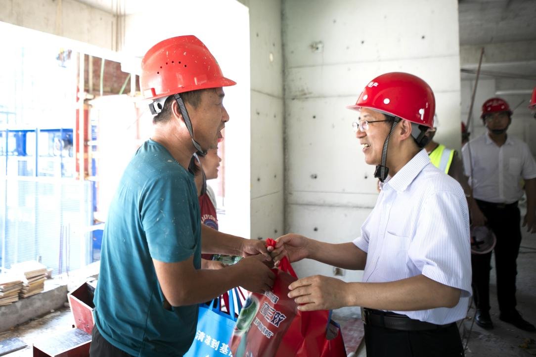 7月14日,建工控股党委委员、副总经理陈仁虎赴长城置业淮北公司龙胤府项目,开展“清凉度盛夏,安康伴我行”慰问活动,向一线工作人员送上夏日的清凉和工会组织的关怀。