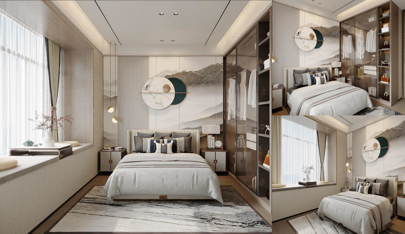 本次开放的实体样板间,是洋房及高层建筑面积约129平方米的户型,采用了新中式及轻奢两种装修风格,布局合理户型方正,6.9米的横厅设计,南北通透,客厅连接南向的双开间1.8米进深的观景阳台,配合系统窗的装饰显得非常的宽敞明亮。九州樾项目实体样板间的开放,把所有想象和图纸化为有棱有角的真实场景,是对美好期许的回答,也彰显了国企的品牌兑现力。